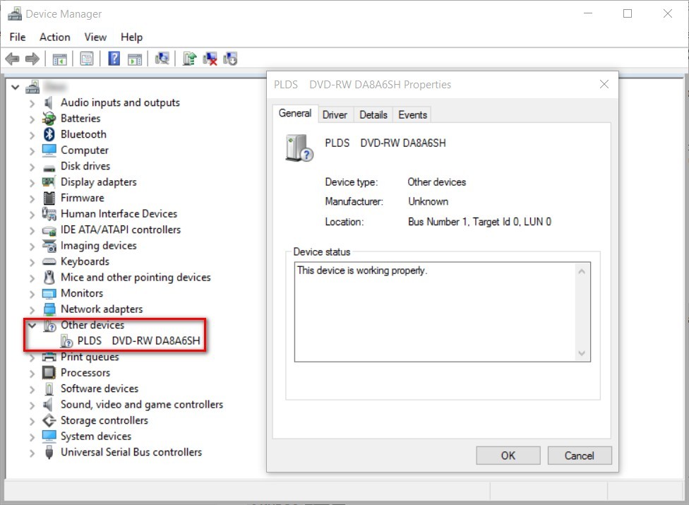 in Windows 10 GamingATA PLDS DVD+/-RW DU-8A5LH is installed as a CD ROM, how to install as a DVD ROM?: I have uninstalled the driver.Updated firmware.Updated BIOSDone the registry things found in other posts, Can't even find the driver needed.Disk drive is built in to the laptop.... -