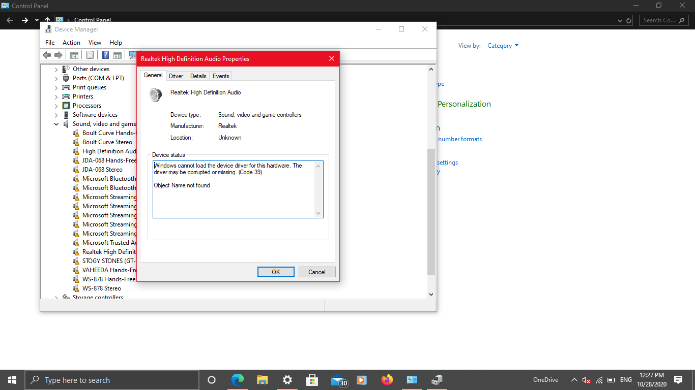 Discus and support Error code 39 in Windows 10 Drivers and Hardware to solve the problem; My computer lost sound when the driver updated.I tried reinstalling and and other solutions I found on youtube.please help me. my current situation... Discussion in 'Windows 10 Drivers and Hardware' started by Sinan Mk, Oct 28, 2020.