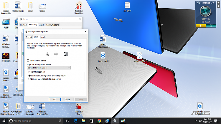 in Windows 10 Drivers and HardwareMic Issue: Whenever I try to record something and play it afterwards, the only thing I hear is like a loud constant beeeeeeeeep. When I check my mic level in settings it is like constantly halfway through even though I'm not talking. I tested this headphone with my laptop and it works... -