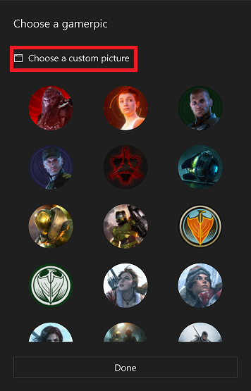 in Windows 10 GamingI can't change my profile picture to a custom one on PC but I can on xbox: Anyway to solve this? https://answers.microsoft.com/en-us/windows/forum/all/i-cant-change-my-profile-picture-to-a-custom-one/b000cb5d-defd-4472-a8f7-d1cc9e090cdf -