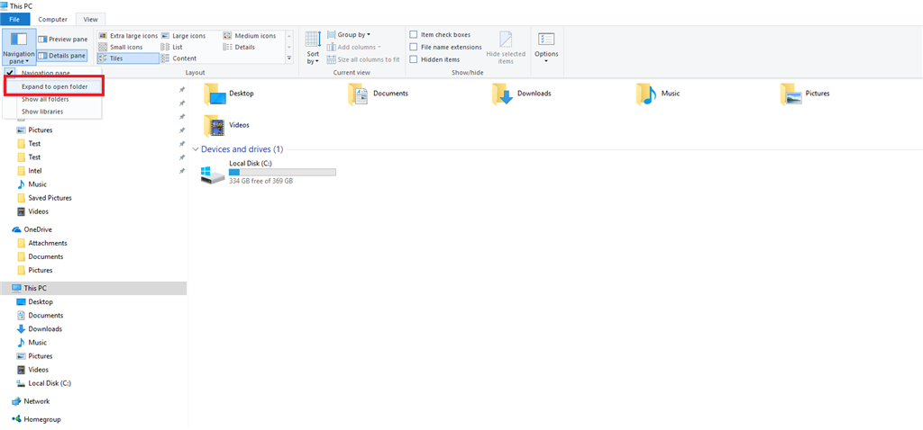 File Explorer: expand to current folder not working