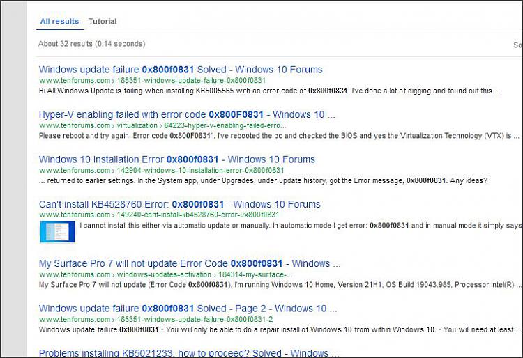 in Windows 10 Software and Apps2023-08 Cumulative Update for V 22H2 fails with error 0x80070002: Went through troubleshooter.Ran DISM.exeRan online cleanup-imageRan SFC /sccrrow ?Down loaded KB5029263Reset BITS lots of resource not found. entry point not found, etc.Just trying to find a phone number to call!Now past my ability to repair... -