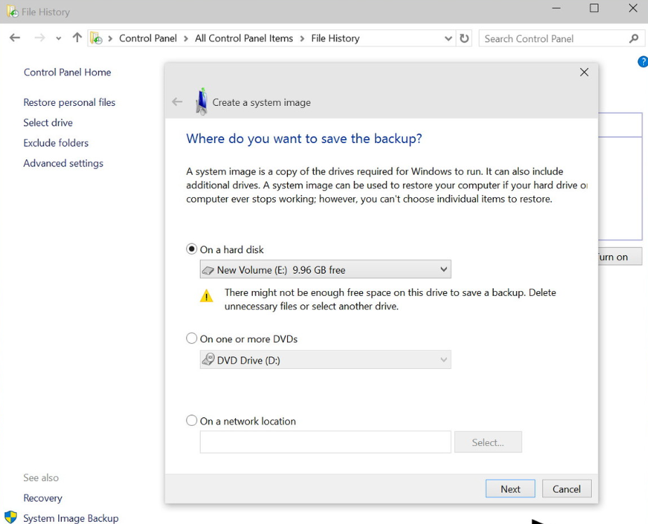 in Windows 10 Software and AppsWindows 11 External Hard Drive Backup and System Image.: I connected a external hard drive to my pc and went to backup and create a system image through control panel windows backup and restore windows 7 and after a few seconds a error message appears, the error code is 0x81000019. A shadow copy could not be created. Please check... -