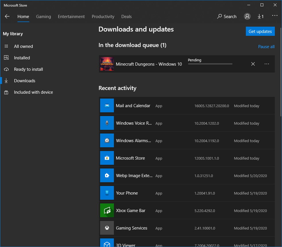 Discus and support Microsoft Store game download stuck on Pending in Windows 10 Gaming to solve the problem; My internet is really slow, like 170 KB/s max in Steam downloads. I'm trying to download Minecraft Dungeons from the Microsoft Store and it's just... Discussion in 'Windows 10 Gaming' started by Dogrules23, May 26, 2020.