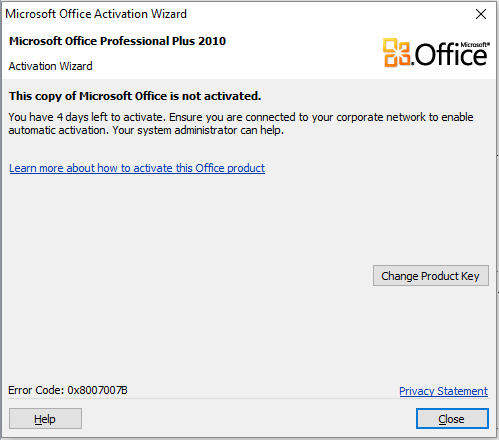 Discus and support Office 2010 Pro Plus Error 1920-Office Software Protection Platform in Microsoft Office and 365 to solve the problem; Getting this error when I try to open Microsoft Office products now. I've never had this issue and tonight it started up. [img] I tried completely... Discussion in 'Microsoft Office and 365' started by flightmedic, May 8, 2019.