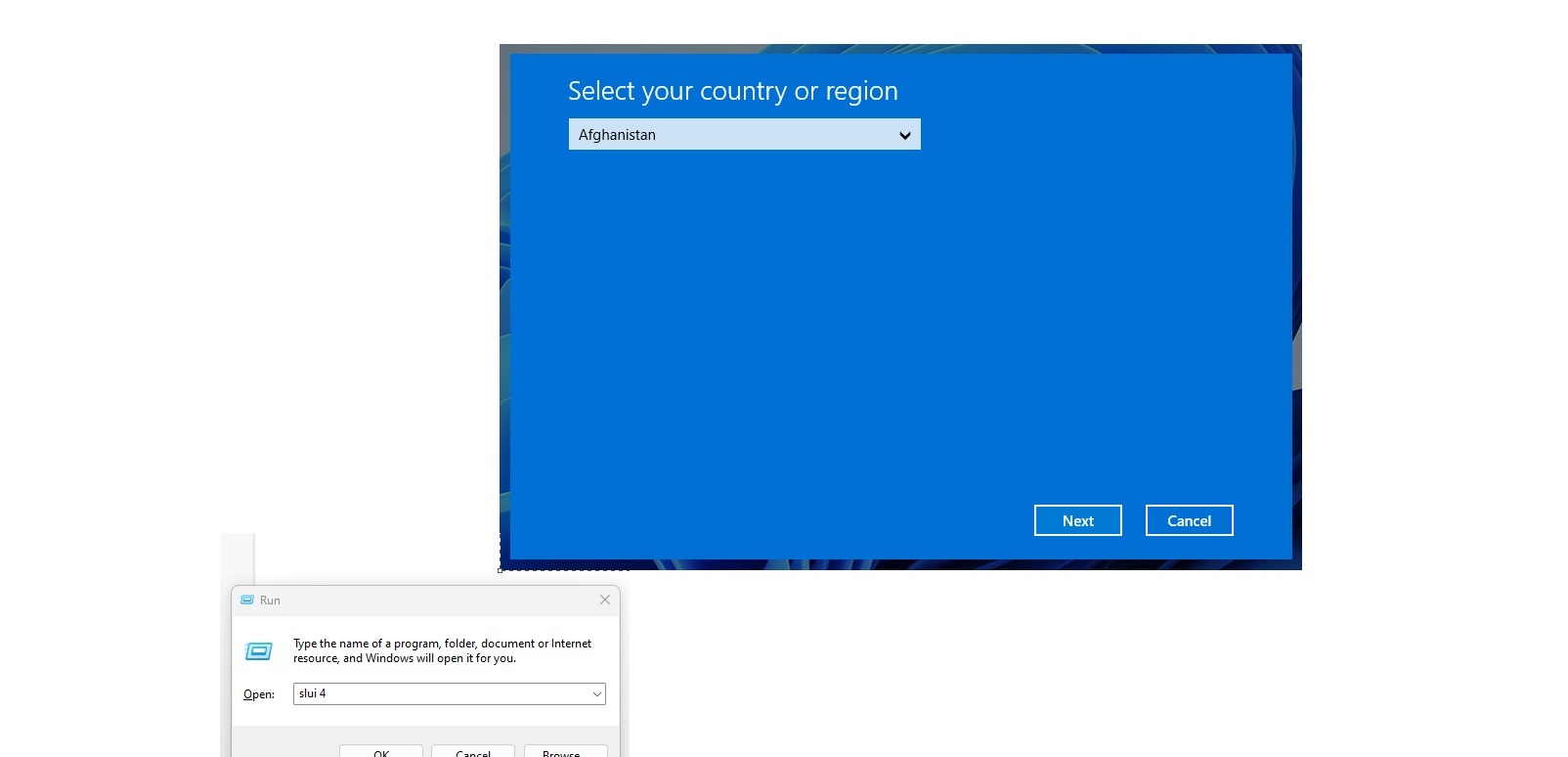in Windows 10 Updates and ActivationSlui 4 is not working: Hello,I have installed Windows 10 Pro on a laptop without internet connection. When I go to "System" > "Activation" I cannot find anywhere to activate my license via phone. I also tried running "slui 4" but it´s not working because nothing appears on my screen when I run it.I... -