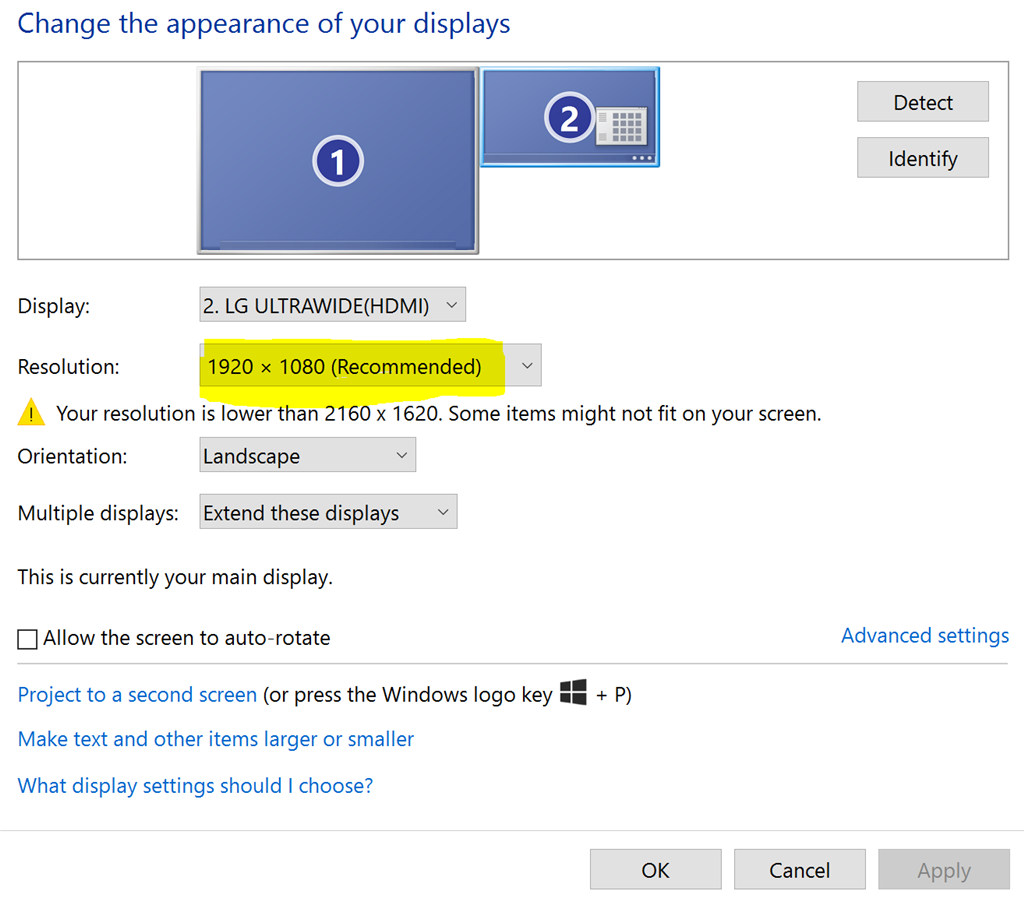 Windows 10: Windows 11 2560 x 1080 screen resolution