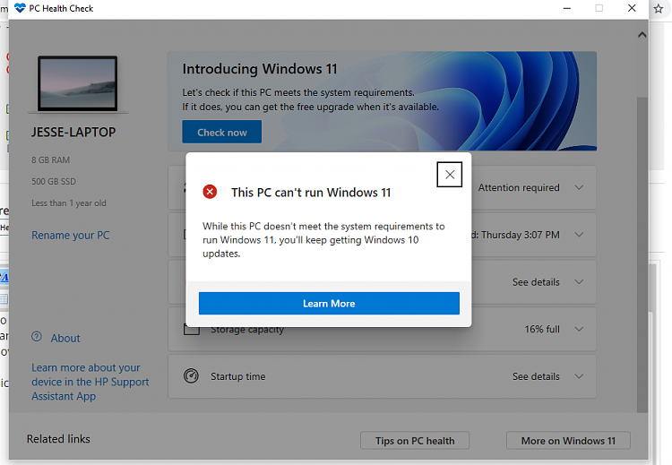 Discus and support windows 11 health check tool error in Windows 10 Software and Apps to solve the problem; i have a surface with Intel® Core™ i7-6650U, its in the compatible list, yet windows 11 health check tool states its incompatible... Discussion in 'Windows 10 Software and Apps' started by Blank_Disk, May 29, 2025.